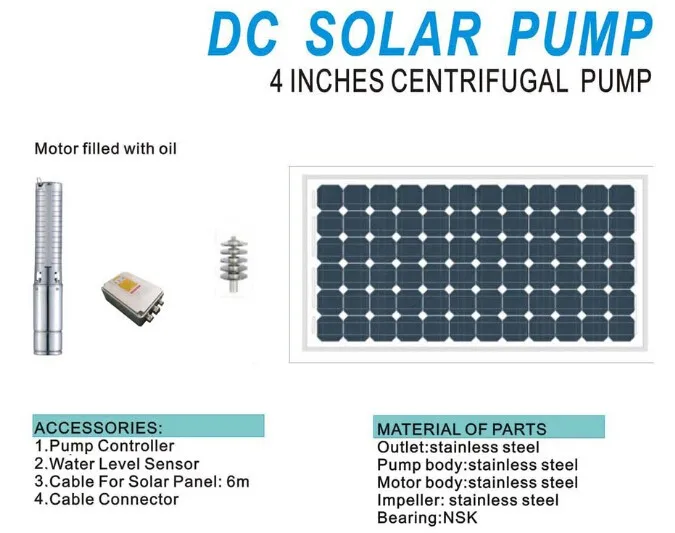 1. The power of solar panel=power of pump X 1.3, the voltage of solar panel=the voltage of pump, the controller should be matched