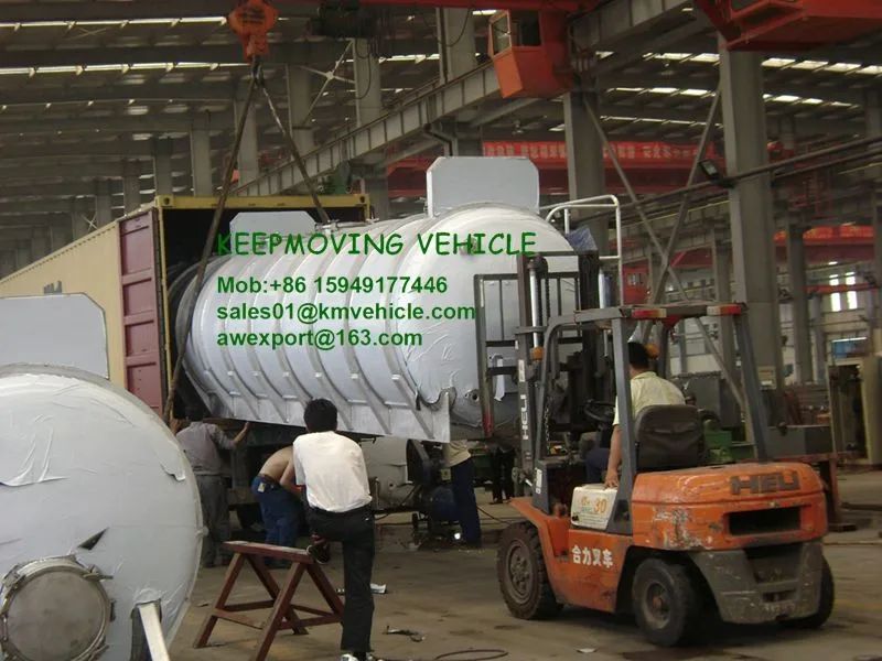 The vacuum suction trailer is nude packing,before delivery,we will put all small parts inside the tank body,then transport to Shanghai port by Tractor.