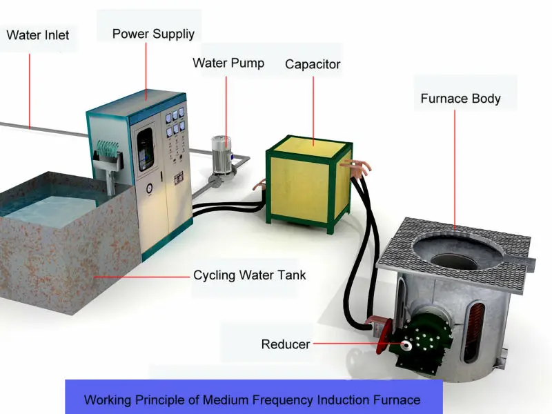 The medium frequency melting furnace uses the basic theory of the induction heating.Induction heating is heating the load by producing the induce current in the load itself depending on the theory of the electromagnetic induction. The equation is e=W.