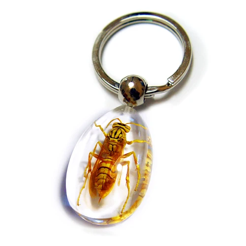 -The real things are permanently embedded in a transparent polymer resin.