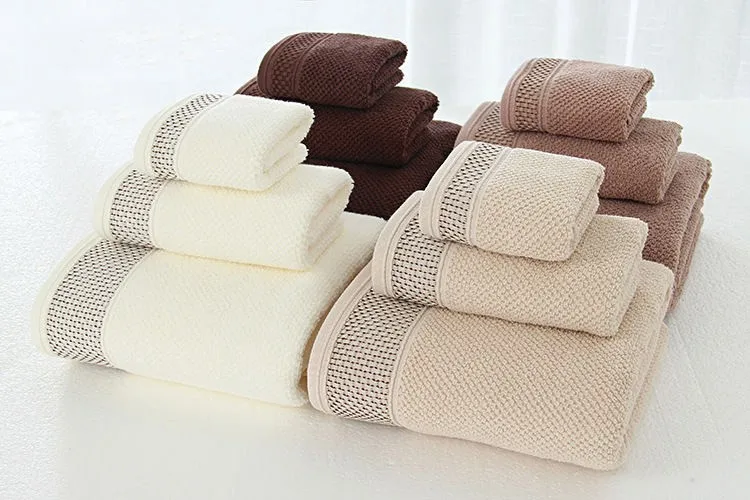 Home Hotel Luxury Modern Wedding Honeycomb Jacquard Pure Cotton Towel set of 3 pcs Face Hand Bath Towel