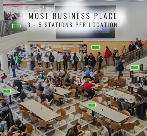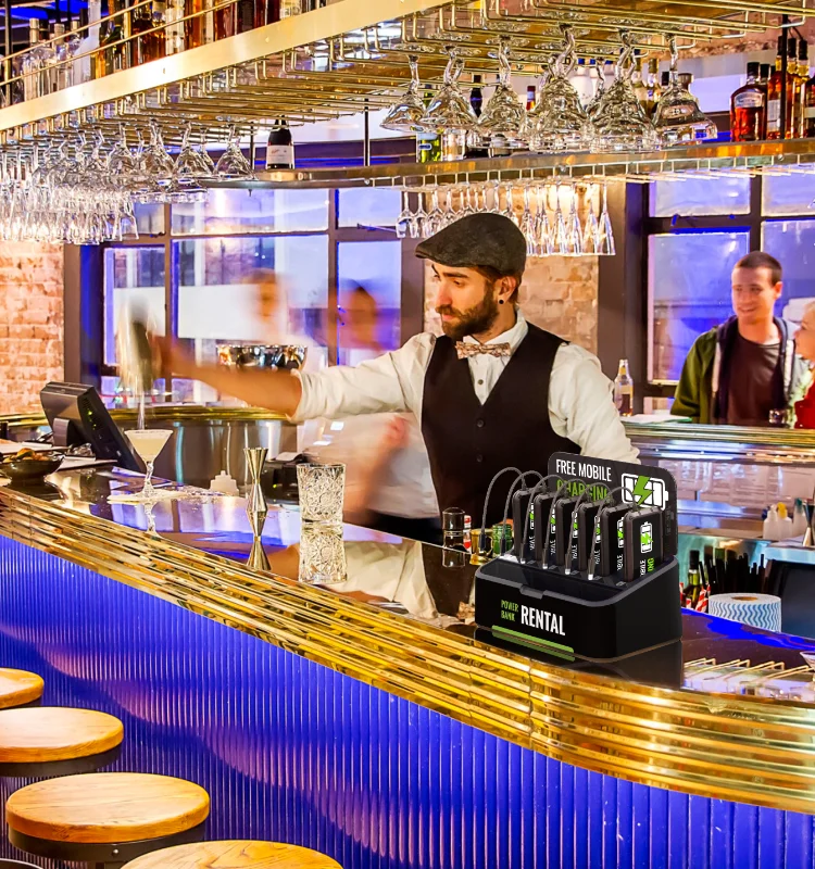Individual battery packs for your guests to charge freely. Six 5000mAh power banks allow you to charge your phone and tablet on-the-go or anywhere in your business; Power bank built-in all charging cables. No need to sit next to a charging station or wall outlet again.