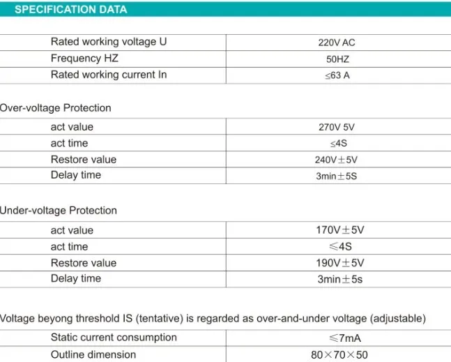 The automatic recovery over voltage and under voltage protective device complies with modular design standards. The circuit boards of products adopt good quality electronic components with reliable performance. when the power situation is unstable. It's protection function will be automatically activated. once the voltage exceeds the limited