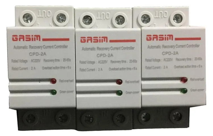 Automatic Recovery Current controller CPD1-40 applicable to the dormitory management, temporary construction management, corporate quarters, school dormitory management so on, where need to limit the electricity power of single load. The product work in rated power, the LED display green. If exceeds the rated current and power, CPD1-40 will automatically cut off in1sec, The LED display red. When the load back to normal, CPD1-40 automatically reconnect in 60sec . The product can effectively control the chaotic temporary electricity, reduce fire and failures caused by overload, and ensure the Electrical safety. The product can reduce the labor intensity of The electrician and the cost of enterprises, is a good helper for electrical safety management.When the current exceeds the ampere of CPD1-40, It will cut off the load in 1 sec. The LED display red. The CPD1-40 will reconnect itself, if you Unplug the illegal load, the LED display green again.The current protector CPD1-40 don't have short current protection function. The method of settle the overload. Main Technical Specification: 1.According IEC60947-5 2.Rated AC voltage 230V±10% and frequency 50Hz/60Hz 3.Passing Max Current: 1A,2A,3A,4A,6A,10A,16A 4.If the power exceeds 10A/2300W, the device will cut off the load. LED display red. 5.If the power back in 10A/2300W, the device reconnect itself. LED display green. 6.Overload cut-off:< 5s 7.Reconnect time after power back to normal: <60s 8.Self-power consumption<2W 9.Electric machinery life=50,000 times 10.Dimension: 36L * 80W * 69H mm 11.Installing: 35mm Din rail | ||||||||