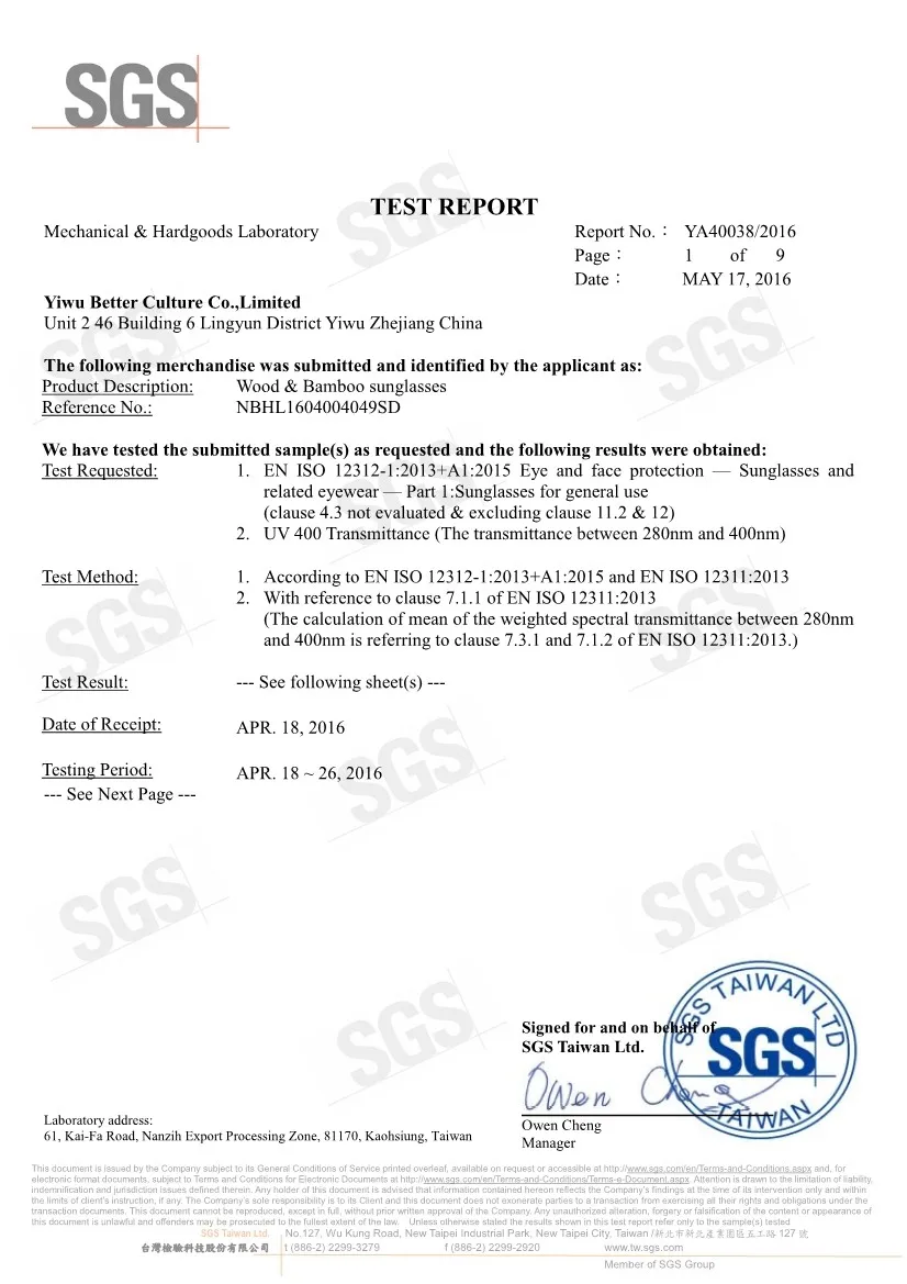 We have SGS certifications. As you can see, our company has a strong competitives and great qualified in our business area. We aim to provide the best quality and services to all global clients.