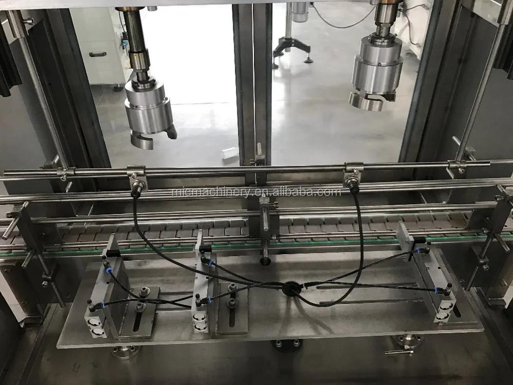 The machine adopts piston pump for filling. By adjusting the position pump, it can fill all different size bottles by one filling machine, with quick speed and high precision.