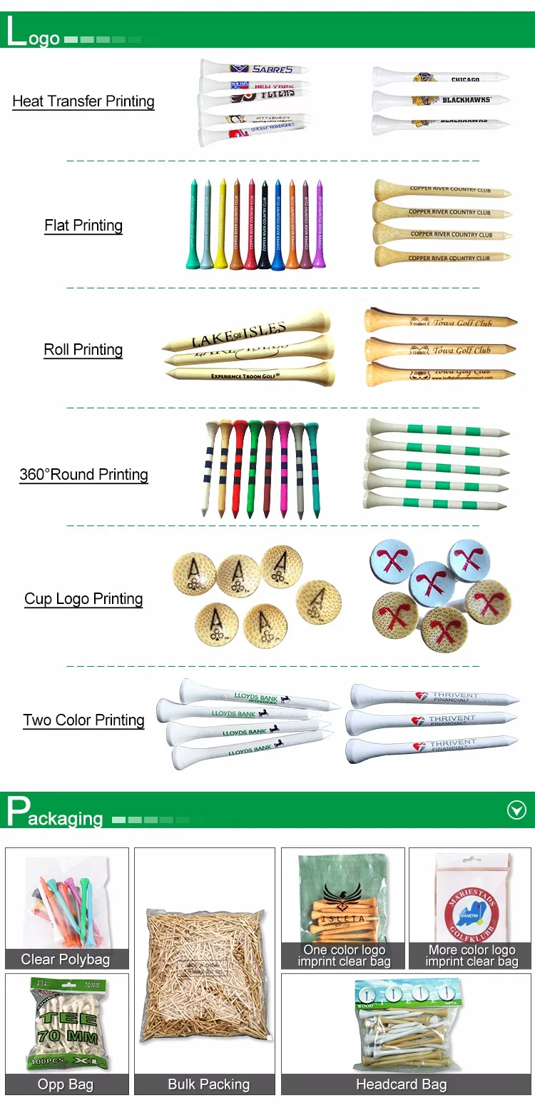 2017 new colorful logo print bulk bamboo golf tee