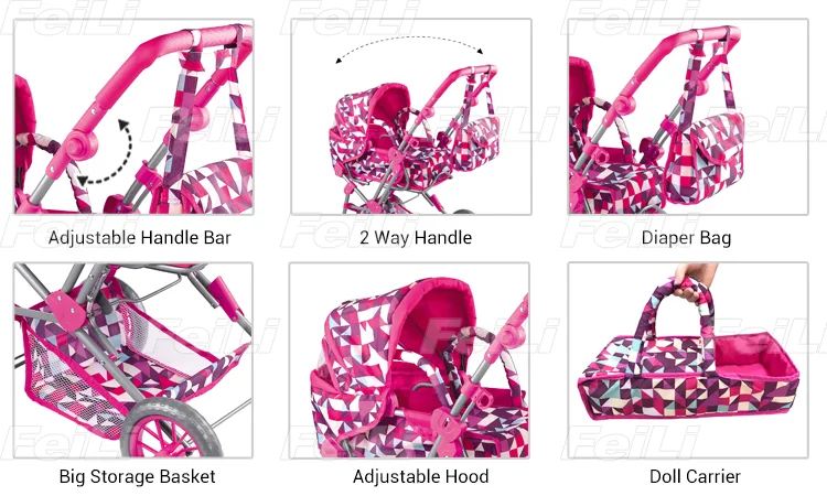 Description: | Fei Li toys deluxe doll pram with shoulderbag doll pram toys |
