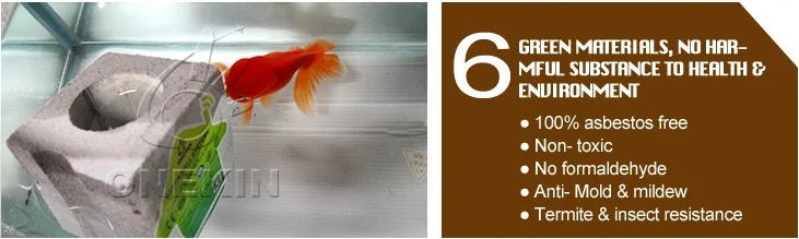 Onekin green panel used 100% green raw materials do not contain harmful factor to human body, it’s without asbestos and non-radioactive, and does not contain formaldehyde, free of heavy metals and other harmful substances. It don’t release poisonous gas under the high temperature of 1000 degrees. Meantime, Onekin green panel can make any waterproof surface, 22% water absorption rate allow it to used in wet environment