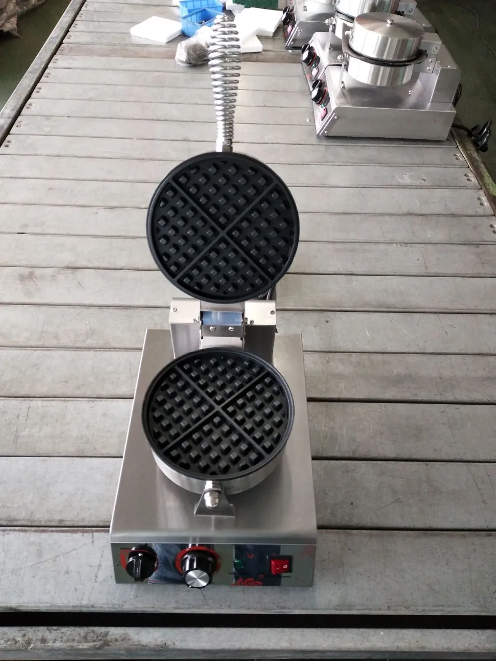 Waffle Machine is suitable for producing waffle. It is widely used to cinema,snack shop,restaurant ,canteen etc.