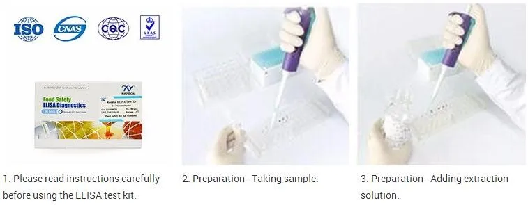 This product is based on indirect competitive ELISA, which is rapid, accurate and sensitive compared with conventional instrumental analysis. It needs only 45 minutes in one operation, which can considerably reduce operation error and work intensity.