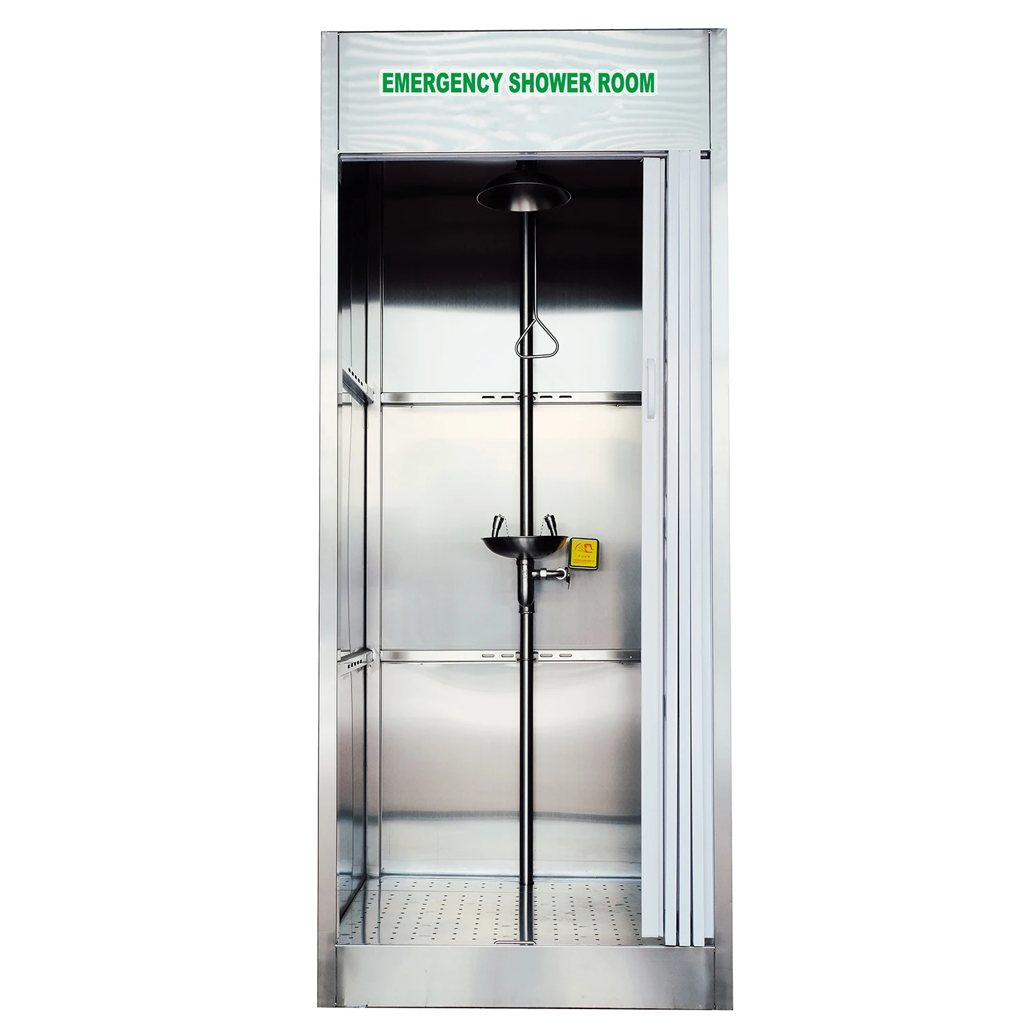 As new generation compound shower room and eye washer, it's have multi-functional besides basic eye wash & shower functions which including adding water tank on the top of the room. It can be widely used at jobsites and laboratories in the fields of pharmaceutical, chemical, petrochemical, electronics, semi-conductor industries where dander tends to occur unexpectedly. In the event of chemical or poison spill accident, this equipment can minimize the damage and harm to the user by delivers water to rinse contaminants from user's eyes, face and body.
