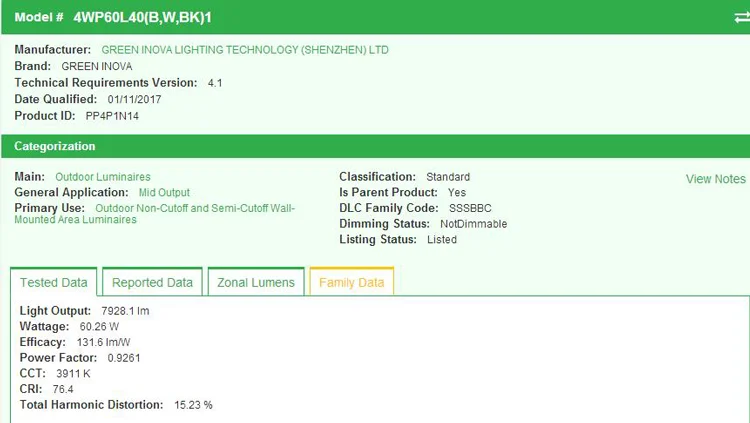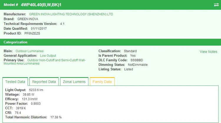 98% of our products are qualified with UL, cULs, ETL, cETL, Energy Star, DLC(e.g.:4WP40L50B1), CE, ROHS, SAA certificates.They are also with different tests such LM79, LM80, IES files etc. We are committed to providing our customers with high-tech LED lightnings with excellent quality and at affordable prices.