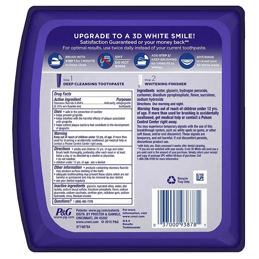 Two-step daily cleansing toothpaste and whitening gel keeps your smile up to 99% as white as a professional polish with daily use. Stain assessed 4 weeks after a dental cleaning