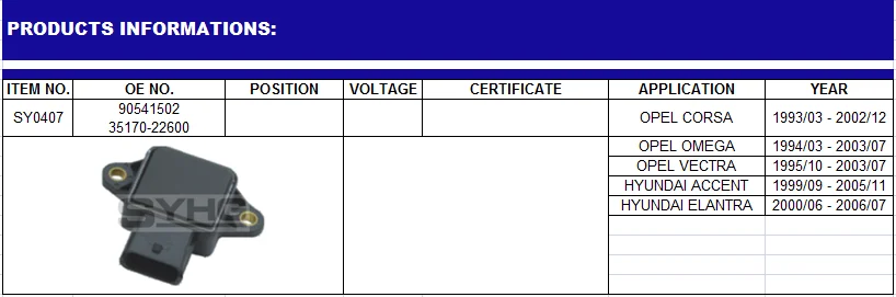 For Car OPEL/HYUNDAI 90541502/35170-22600, 90 541 502/3517022600, 35170 22600,5826473 Auto Throttle Position Sensor