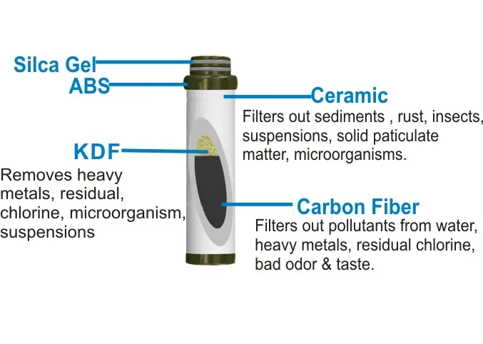 QUANJI Personal Water Filter / Camping water filter provides safe, odor-free, good tasting drinking water-even with frequent, heavy use. New Advanced 3-Stage Filter (Ceramic, Carbon Fiber and KDF) with Filtration of 0.1 Microns.
