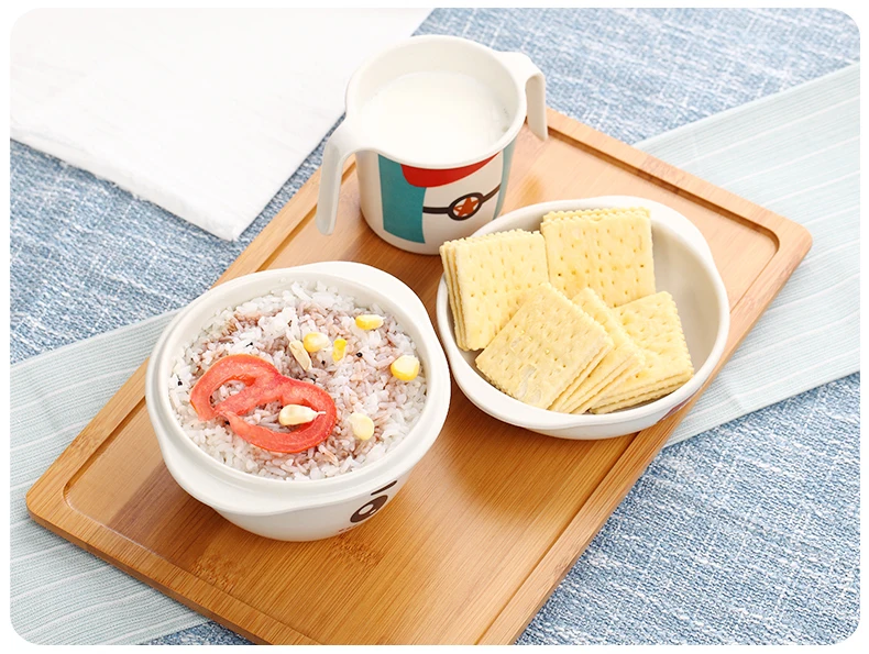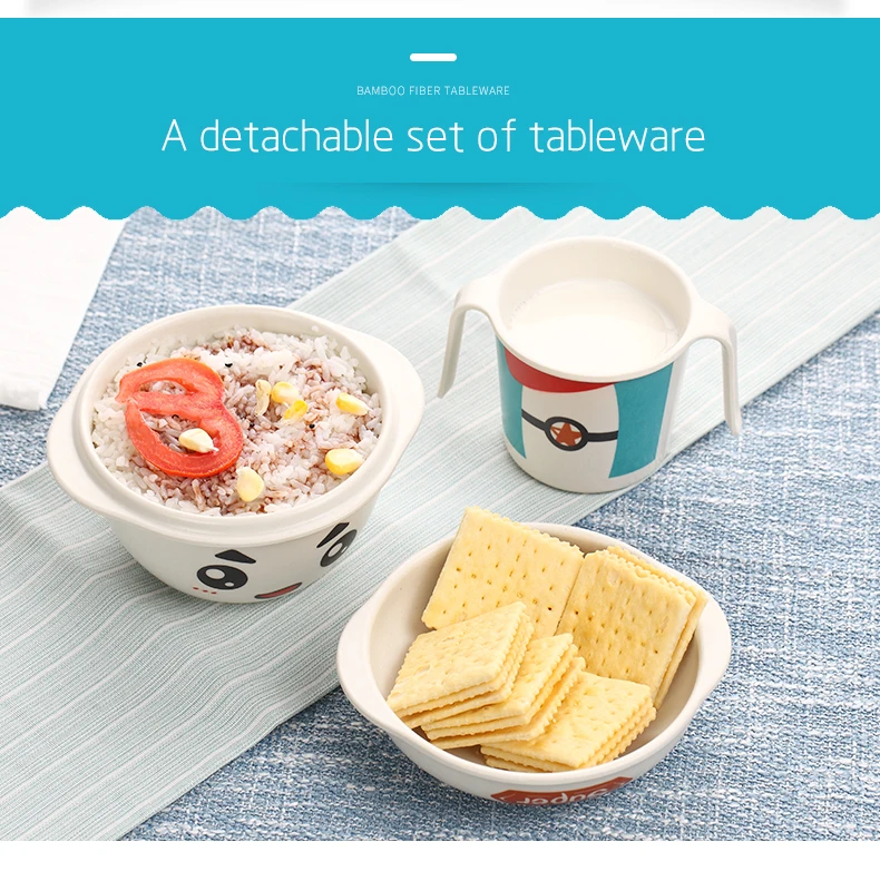 Cute Cartoon Bamboo Fiber Dinnerware Sets Eco-Friendly Kids Tableware Set Assembled Boy & Gril Cutlery School Picnic Set