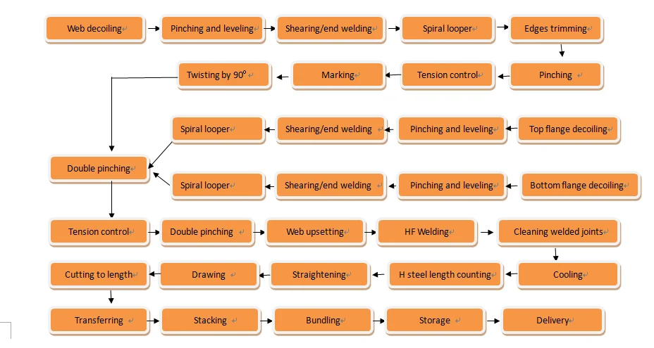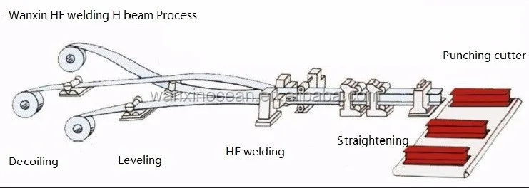 The welding part use high frequency welding, with two welding principles of “skin effect” and “proximity effect” of the high frequency current, H beams can be welded with lower welded power.