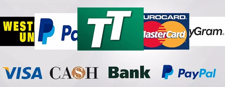 TT, Money Gram, Western Union, Paypal, online order etc.