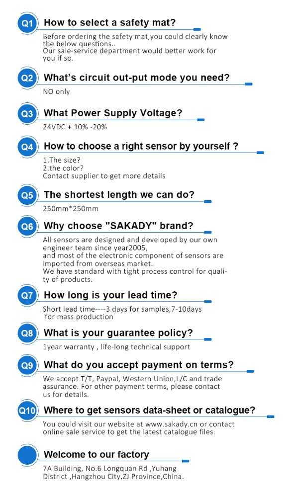 1:The safety carpet detects enough pressure to generate a switch signal to protect the area.Safe and reliable, free and convenient installation.