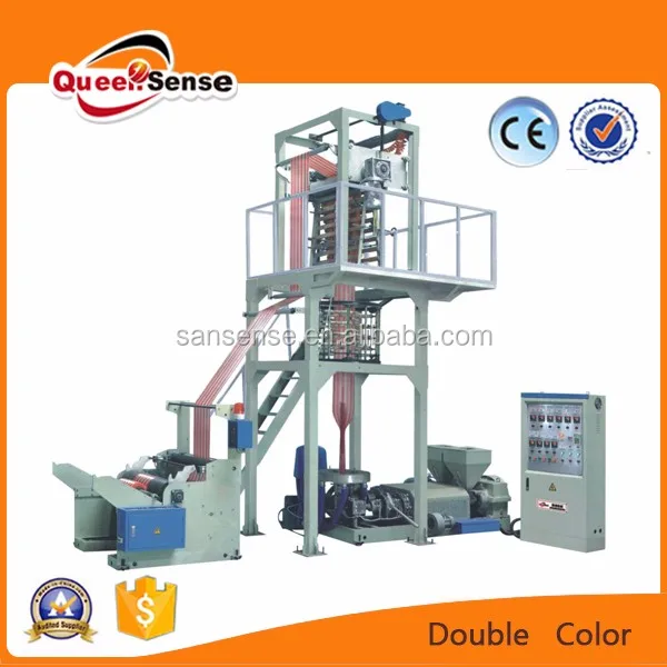 Its extruder, cylinder and screw and barrel are made of quality alloy steel that have been nitrized and processed in a precision way. Hence it is sound in hardness, durable in corrosion resistance. The specially-designed screw is of sound quality in plasticizing, which helps increase the production capacity. It is applied to blowing the plastic films like low density polytene (LDPE), high density polytene(HDPE) and linear low density polytene (LLDPE). It is widely applied to producing the packing bags for foodstuff, clothing, rubbish bag and vest ones.