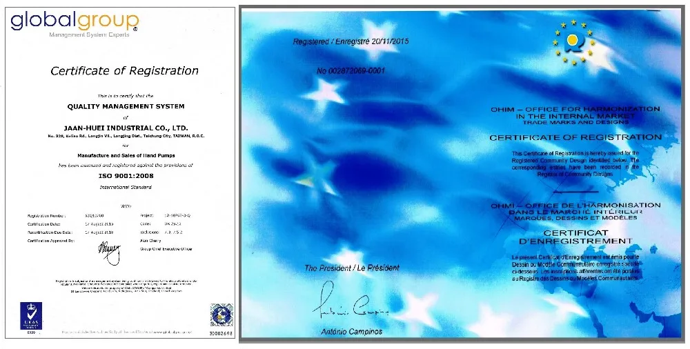 Jaan-Huei Industrial Co., Ltd has obtained the patent and trademark from the USA, Taiwan, China, Europe.