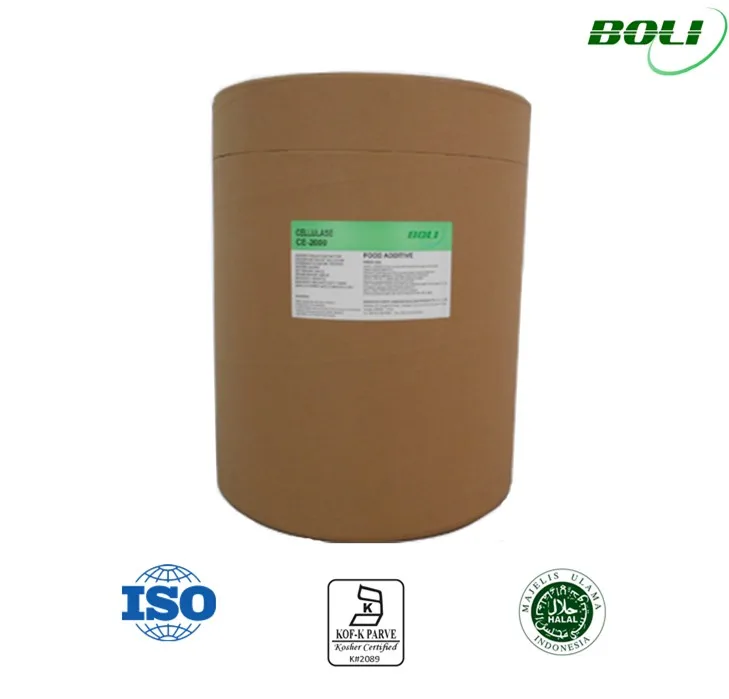 Cellulase CE-2000 is a powder enzyme preparation derived from Trichoderma reesei culture through submerged fermentation, extraction and refining process. It consists of endoglucanase, CellobiohydrolaseⅡand β-glucosidase, with main effects on β-1, 4 bonds of the cellulose molecules. It can decompose the structure of cellulose and degrade it into oligosaccharides and glucose.
