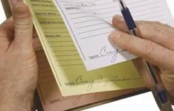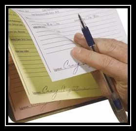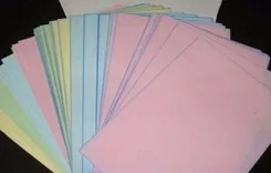 Carbonless copy paper was first produced by the NCR Corporation. Formerly, the options were to write documents more than once or use carbon paper, which was inserted between the sheet being written upon and the copy. Carbonless paper was used as business stationery requiring one or more copies of the original, such as invoices and receipts. The copies were often paper of different colors (e.g. white original for customer, yellow copy for supplier's records, and other colors for subsequent copies). Stationery with carbonless copy paper can be supplied collated either in pads or books bound into sets, or as loose sets, or as continuous stationery for printers designed to use it.