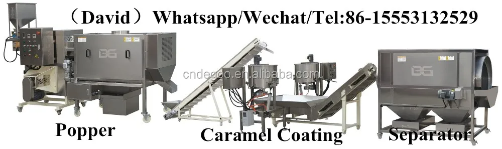 This popcorn processing line can produce various flavored popcorn ,such as chocolate ,cream,salty,sweet,caramel etc.