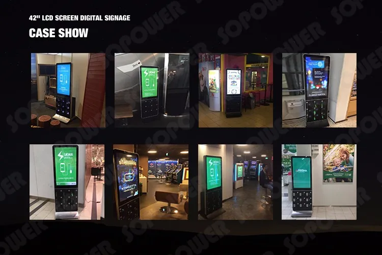 Sopower company mainly major in Interactive Information Kiosk,Video Advertising Kiosk,Mobile Phone Charging Kiosk,Free Pay Phone Charging Station deposit locker, phone charger and advertising display ,digital signage,display lcd ,electric charger mobile phone charger station,cell phone charger station Kiosk, phone charger station, cell phone charging Kiosk, mobile phone charger, charger, charging plug,Smartphone charging station,Mobile phone charging station,Charging station for mobile phones/coin, bill, card operated phone charging station,cell phone charging vending machine,advertising charging station.
