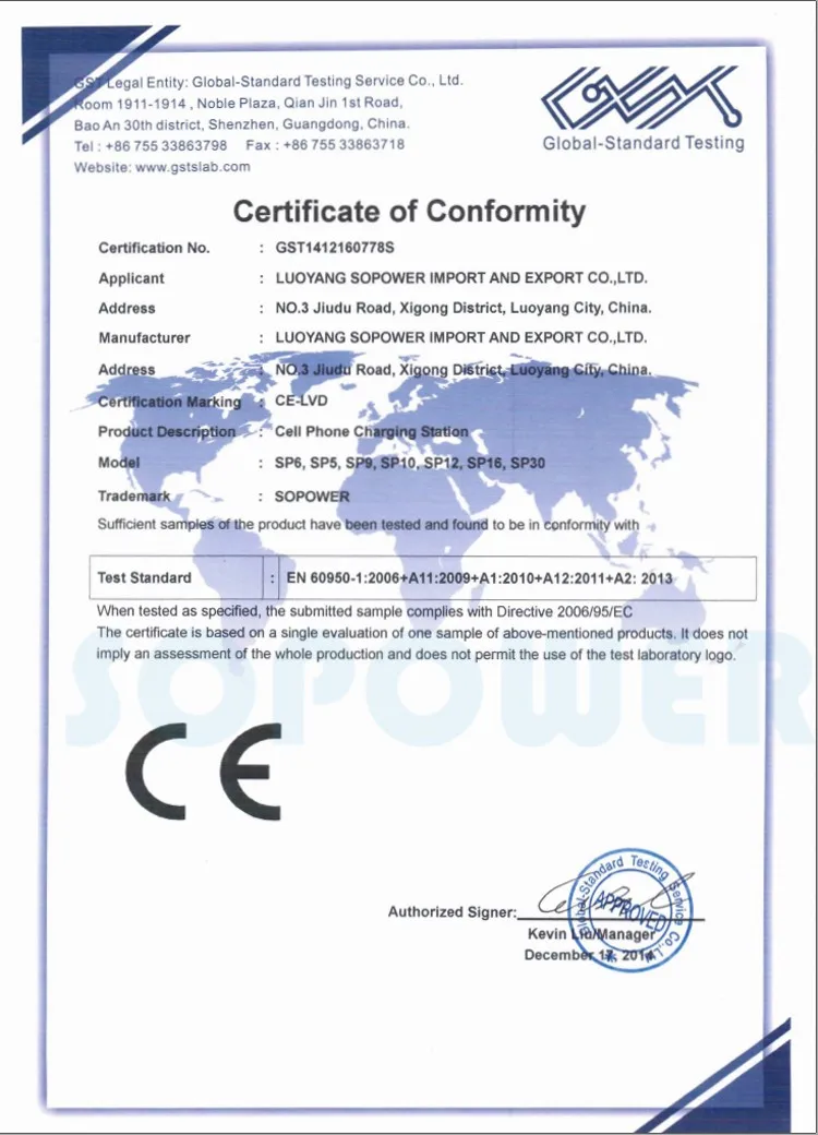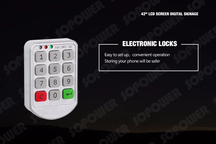 Luoyang Sopower Import and Export Trade Co., Ltd, is a professional supplier engaged in the research, development, production, sale and service of smart locker , such as advertising digital signage display, mobile phone charge station, electronic storage locker, solar phone charging station, coin operated phone charging station and so on. In addition, we have attained RoHS,CE,FCC and ETL certificates.