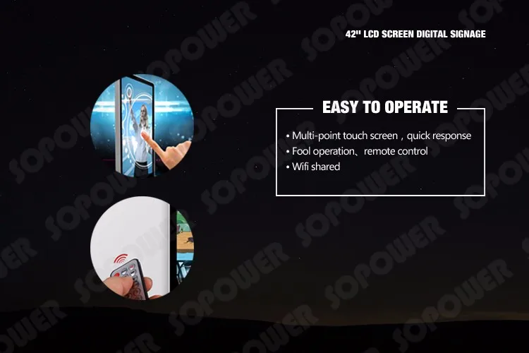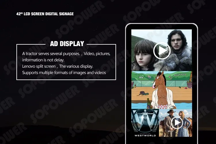 Change advertisement content as your wishes.Support switch to different signal (e.g.: HDMI, VGA, AV); Check, programs quickly: Help your advertisement switch more smooth, display more advertisement at the same time.