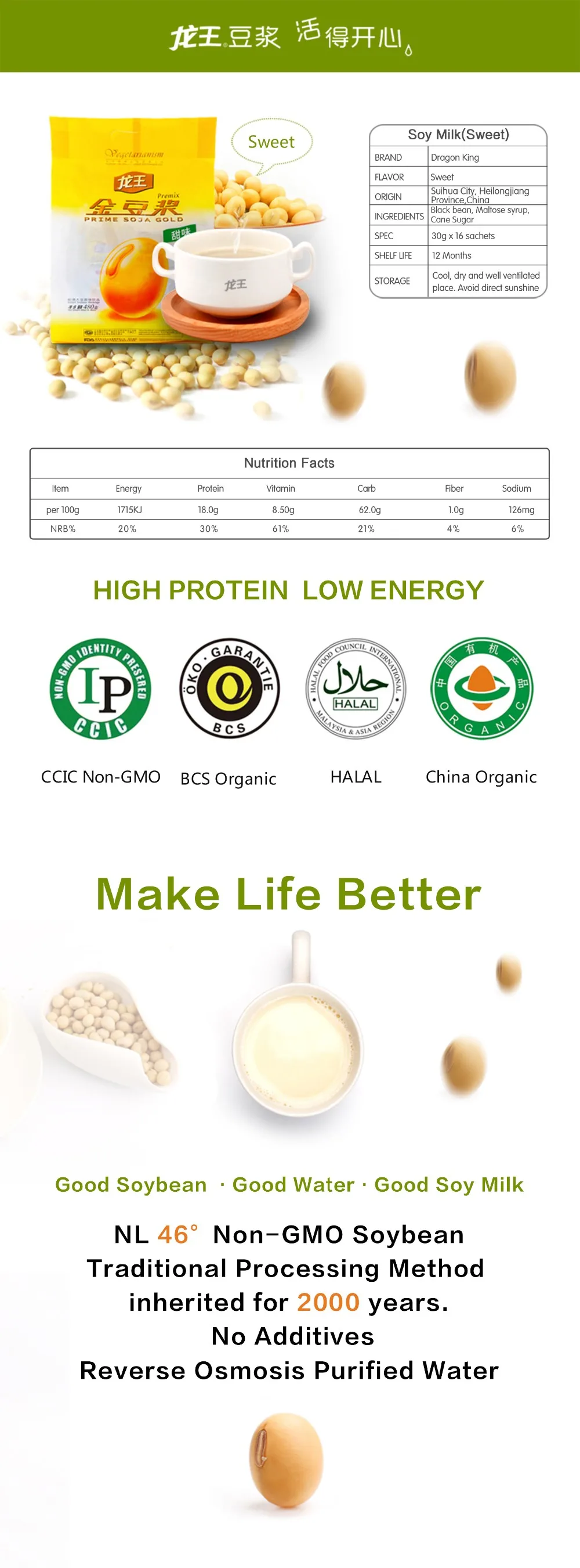 IP Non-GMO; BCS&USDA Organic; HACCP; GMP; HALAL;