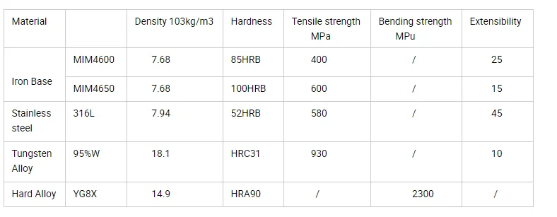 Basic properties of MIM materials