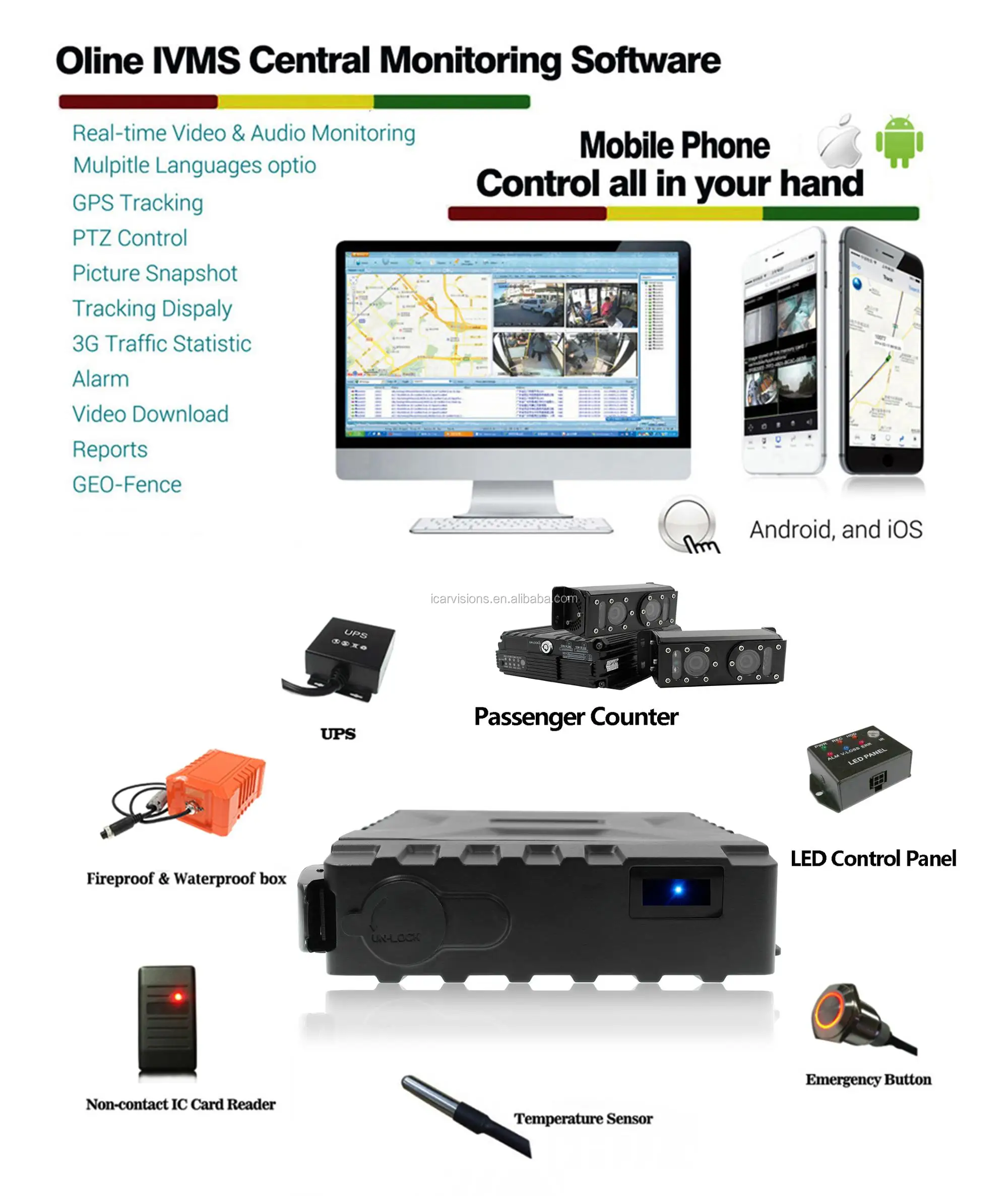 ICARvisions is a solutions based, global leader specializing in vehicle related hardware and software design, manufacture and deployment of Mobile Digital Video Recorders (MDVR), Mobile Network Video Recorders (MNVR) and Sensors, Cameras, Cables, and Accessories.And we have a strong RnD team so we have developped our own server and software for any OEM & ODM projects.