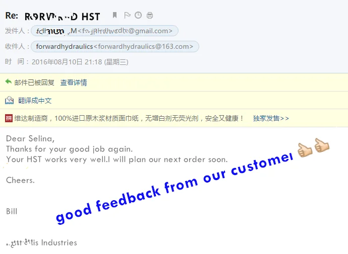 Hydrostatic transmission HST 45CC for corn harvester will be packed in carton then in pallet or according to customer's request.