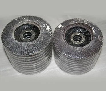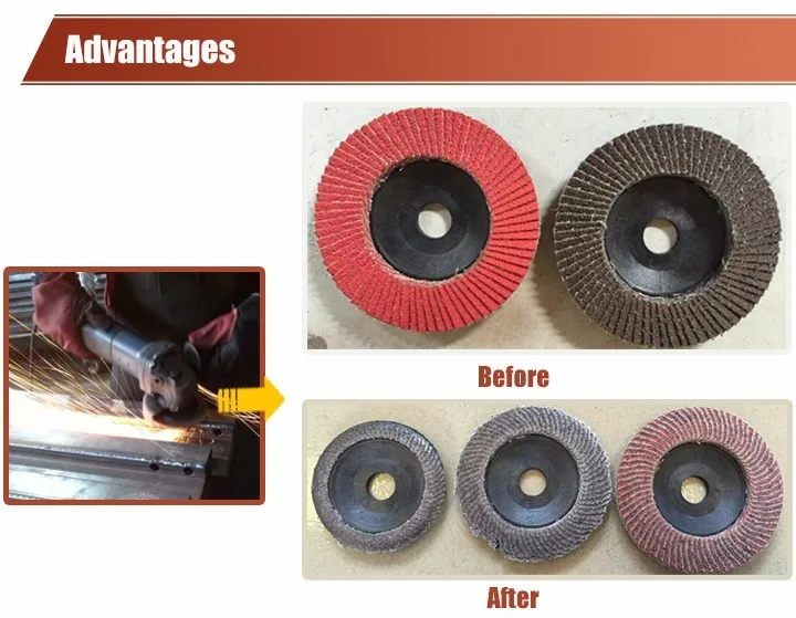 Flap disc are versatile grinding and finishing tool,consisting of three main components:a backing plate,adhesive,and abrasive cloth flaps.The rectangular flaps are overlapped and glued to the backing plate.Flap discs are designed for right angle grinder applications ranging from heavy stock removal to surface blending.Sanding Abrasive Flap Disc Mop 115 x 22 GRIT 40 sandpaper.