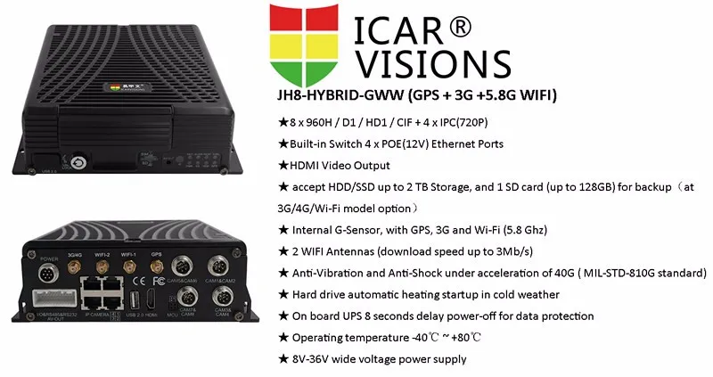 ICARvisions was established by a group of senior R&D software and hardware engineers who have specialized in MDVR development internationally for over 10 years with one goal in mind; we are a solutions based, global leader specializing in vehicle related hardware and software design, manufacture and deployment of Mobile Digital Video Recorders (MDVR), Mobile Network Video Recorders (MNVR) and Sensors, Cameras, Cables, and Accessories.