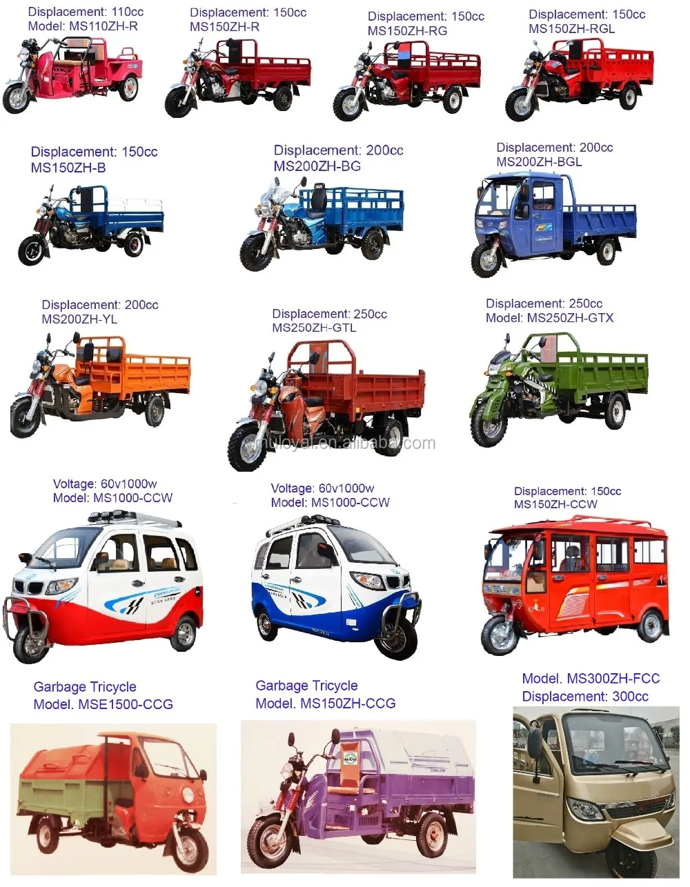 Shanghai Muloyal Global Co.,LTD is the professional supplier of high quality tricycle motorcycle, which uses for cargo and passengers.