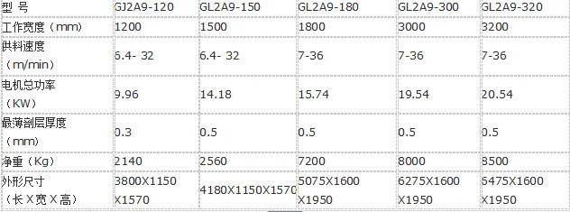 GJ2A9-120 splitting machine, mainly applied for splitting chrome tanned leather of small specifications (such as pig, sheep, cow, etc.) and various thickness raw furs. Minimum splitting thickness: 0.5mm (chrome tanned leather), 0.3mm (finished leather); splitting precision: ±0.08mm (chrome tanned leather), ±0.06mm (finished leather). This product utilizes PLC system and the position of feeding roller is controlled by the program and displayed digitally. Besides, it has power failure memory and can automatically detect and control the blade in the fiducial position.