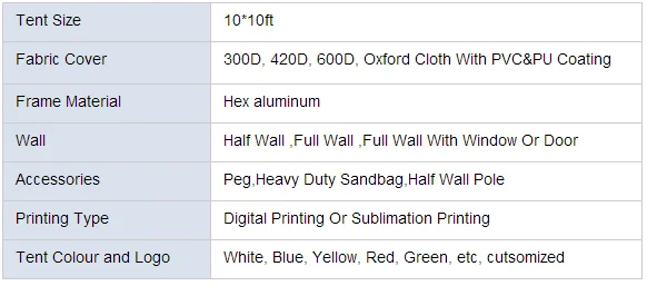 Tent specification: