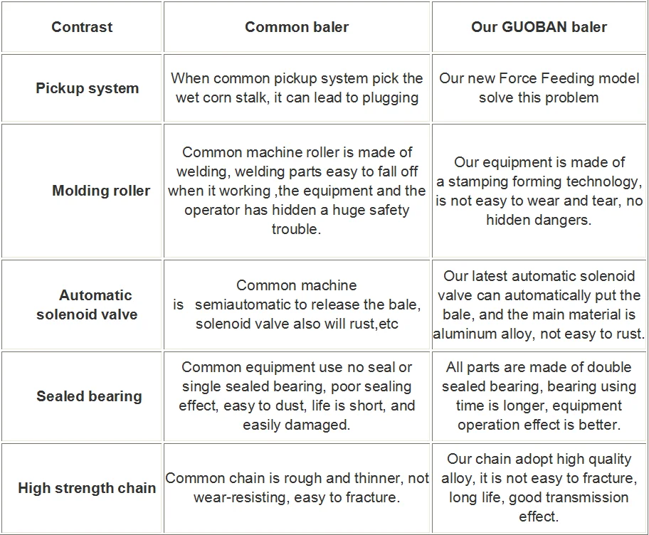 Baler Size (dia*width) | 50*70cm | 60*70cm | 70*100cm | 90*100cm | ||||