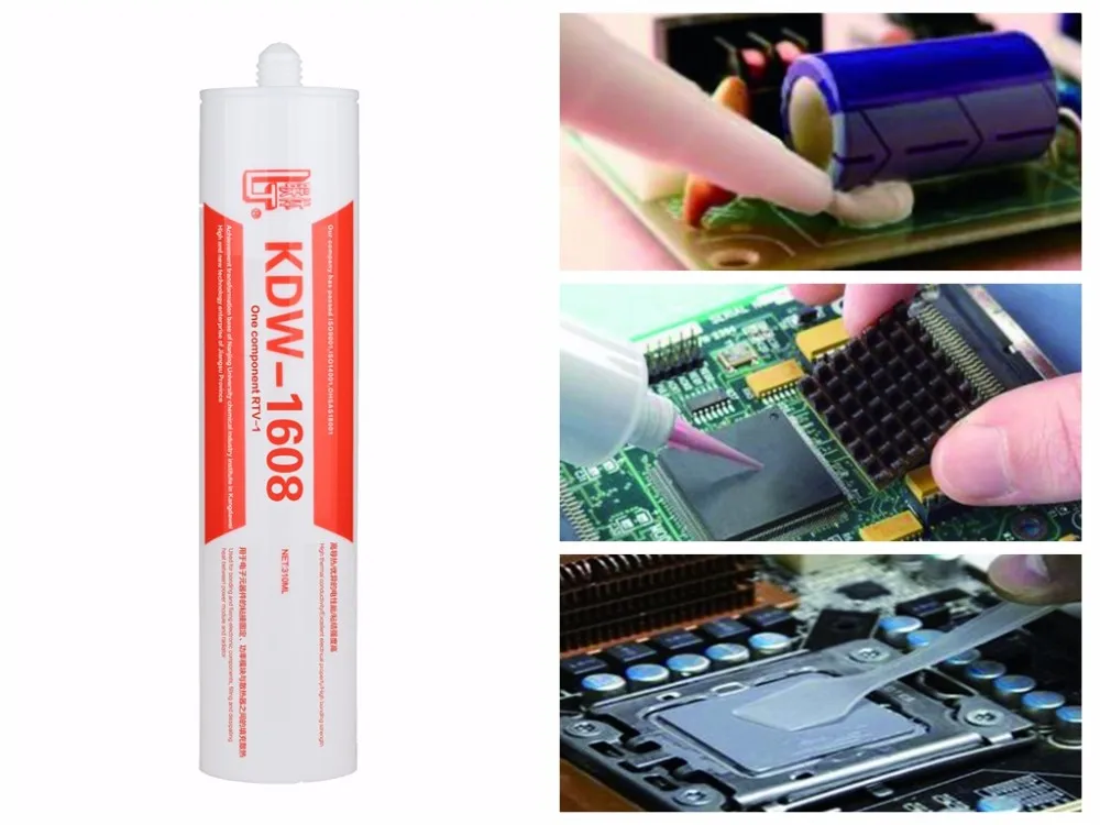 KDW-1608 is one-component neutral thermal conductive rubber, which is cured from the outside to the inside by absorbing moisture in the air. It could be used in all kinds of electronic products of thermal conductivity and adhesion. It has excellent electrical insulation property, dampproof, anticorona, the function of cushion, and good high and low temperature resistance performance, temperature resistance range is -60~+260℃. The product is non-toxic, which has excellent aging resistance performance and long service life. It could be long-term used in indoor and outdoor products of adhesion, sealing, waterproofing and insulation protection.