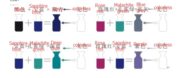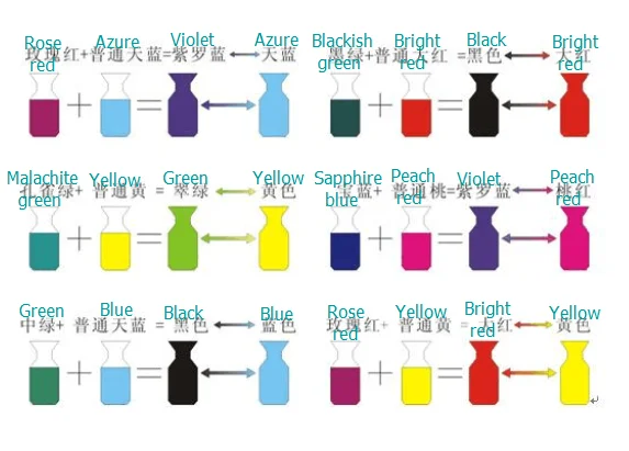 Between the basic colors collocate according to a certain proportion, and can get many the color change effect.