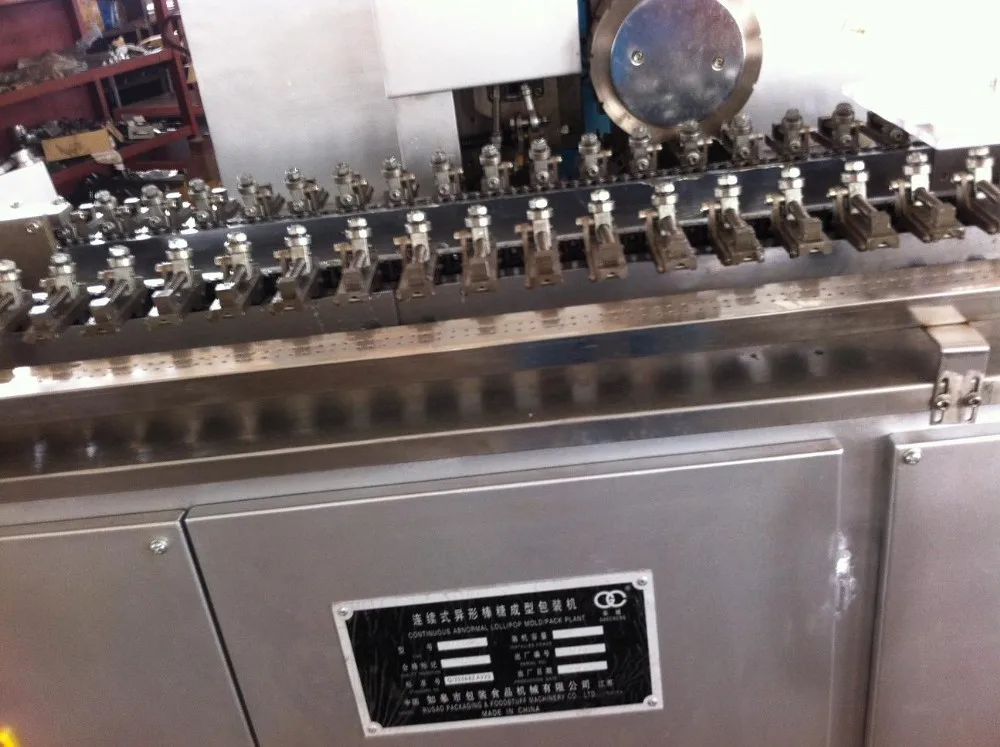 The plant is suit to produce and package flat lollipop with many advantages of reasonable structure,superior function,pleasant appearance,reliable performance and so on,it will convenient your work and help you to attain the utmost profit. The line consists of dissolve tank,syrup pump,storage tank,cooker,cooling table,batch roller & rope sizer, lollipop forming machine and wrapping machine,cooling equipment.