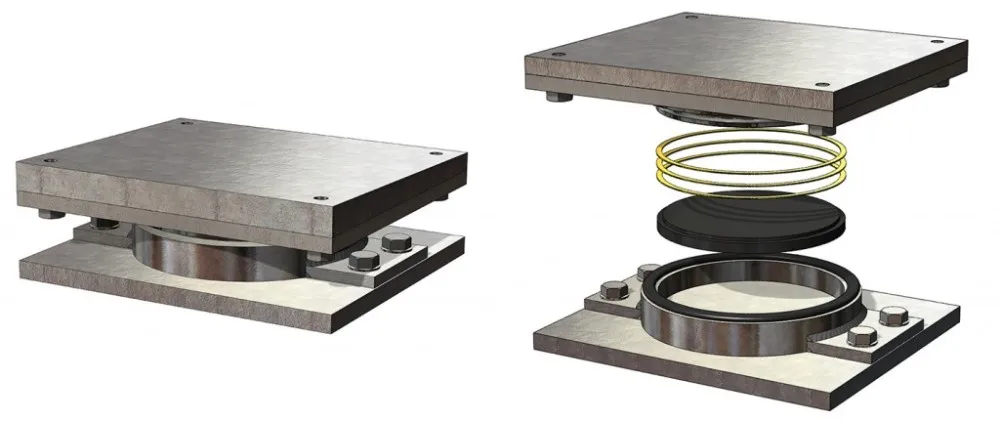 2, Maximized shearing strength of elastomer pad through the method of encasing it in the steel pot.