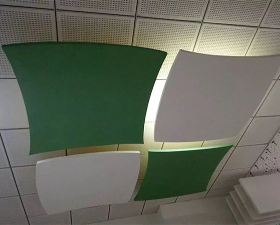 With free open design,Special-shaped suspension board endows new definition of the space and presents new feeling of the hall combined with vivid surface shape and gorgeous color. Special shaped glass fiber/rock wool ceiling board provides you with creative sound-absorbing solutions, improves voice clarity and brings comfortable acoustic experience. The beautiful and innovative frame-less independent sound-absorbing ceiling is easy to install and particularly suitable for the area in which the suspended ceiling cannot be applied.