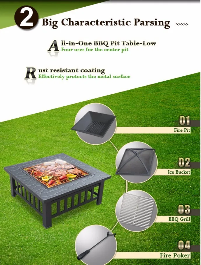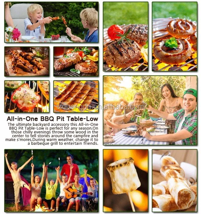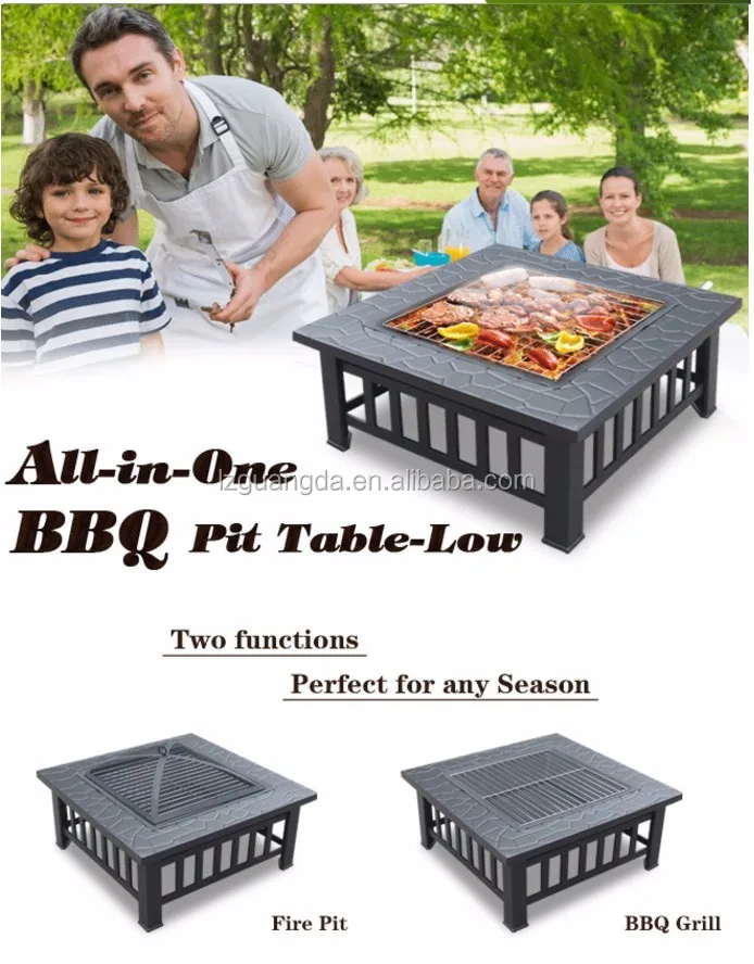 The ultimate backyard accessory this Multi-Function BBQ Pit Table works great for every season. Set in a square table with ceramic tiles this outdoor barbeque pit is both inconspicuous and useful. Simply remove the center tiles to reveal a steel tray that easily transitions for a variety of uses. On those chilly evenings throw some wood in the center to tell stories around the campfire and make s'mores. During warm weather, change it to a barbeque grill to entertain friends or as a cooler to chill your beverages. When not grilling or serving as a cooler it makes an elegant piece of garden furniture as a simple outdoor table. With this all-in-one table your garden parties will never be the same.