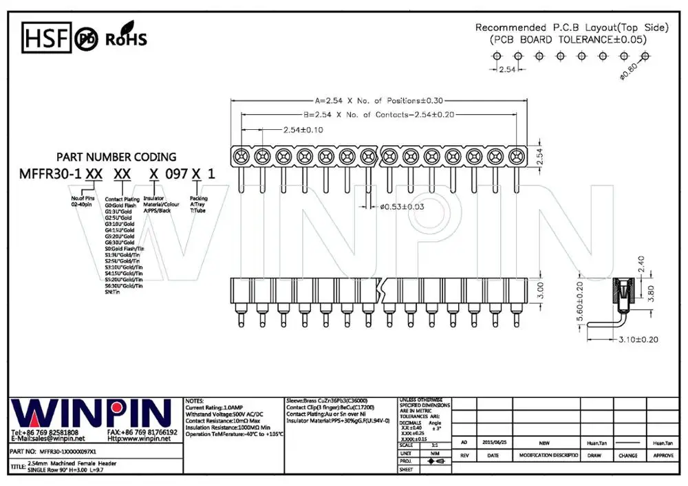 Contact Plating: | Au, Sn over Ni | Material Flammability Rating: | 94-V0 |