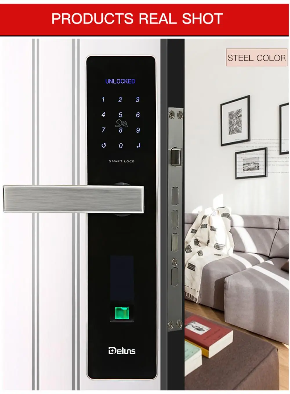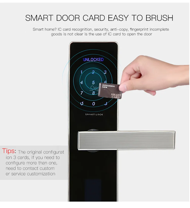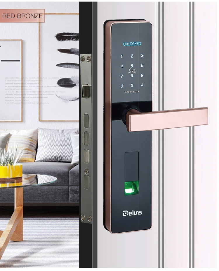 Deluns remote control APP rfid card code smart fingerprint lock hotel office apartment
